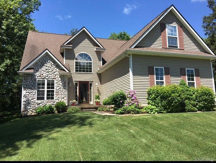 BONUS!! The recent hail storm damaged the roof and siding so sellers made a claim and the adjuster agreed soo... Now this home will be getting a New Roof, New Siding and New Gutters!! Seller4 has decided it will be replaced with Sea-grass Siding, Charcoal Shingles with Black Shutters! (renderings are pictured herein)! This home offers it all; quiet neighborhood, privacy and relaxation! South Oaks Subdivision is just west of Howell Nature Center, a kid's favorite! Wonderful community with playground and low traffic streets. Relax during the summers and enjoy the large 20'x16' composite deck, 18' pool (w/New pump 2022) with separate sunning deck, invisible fencing and wildlife viewing in rear! 3 or 4 bedrooms with Master Bedroom on entry level with separate shower and soaking tub. New $6,000 front door / sidelights 2022; New HVAC in Dec 2022; Newer hardwood flooring in Great Room and Office 2019; New carpet, New floor in Master Bath and Laundry, New paint, Newer well tank, softener and bladder too! Septic (in front yard) pumped in 2022 and New well pump 2016; Fantastic $6,000+ "Fireplace Extraordinair" 36 inch Wood Burner w/blower insert heats entire home if desired! Sprinklers, side entry 3 Car garage w/pin opener code, large front and rear yards, Howell Schools. Home has option of using Office as Formal Dining by inserting a doorway from Kitchen (currently walled). Driveway newly crack-filled and Pool is OPEN! All appliances stay so bring your fussy buyers because this one is ready for immediate move in!!