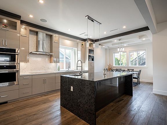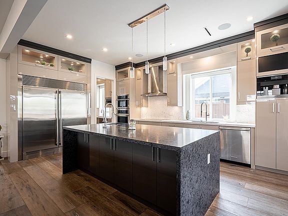 Discover this Custom-Built Luxury Home in the Heart of Ladner! Built by reputable local builder Ladner Homes, truly no expense was spared. The main floor offers an expansive chef’s kitchen with oversized island, premium appliances, spice kitchen with walk-in pantry, large office, and a bright solarium for seamless indoor/outdoor living. Upstairs features 4 generous bedrooms, each with its own ensuite, while the third floor boasts a 764 sq. ft. loft with full bath, wet bar, and deck. A legal 2-bedroom coach home provides excellent income potential. Additional highlights include solar panels, A/C, radiant heating, Control4 Smart System, built-in dog house, and much more. Steps to schools, parks, and local amenities, this one-of-a-kind home is a must-see!