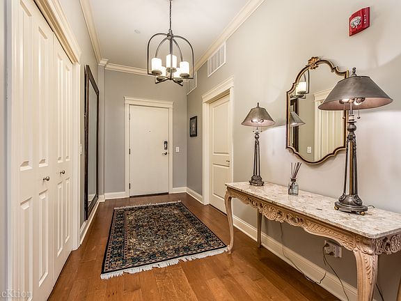 Immaculate and stunning 2 bedroom, 2 bath condo with amazing open floor plan and flawless details. You will be impressed the moment you walk in the door to the inviting foyer, gorgeous hardwood floors and 10 ft. ceilings throughout. The gourmet kitchen has gleaming granite counter tops, custom cabinetry w/soft close cabinets, all stainless steel appliances, updated LED under cabinet lighting, walk-in pantry, and extra large island for entertaining. Spacious master bedroom with spa like en suite bath - his & her vanities, walk-in closet as large as a bedroom, and double shower. Guest bedroom features plush carpeting and large closet for extra storage as well. Quality finishes throughout - Pella windows, oversized crown moldings, wide plank flooring, updated designer lighting in kitchen and dining room. Everything has been freshly painted. This unit is SURE to please even the fussiest buyer! Walk to town, train, entertainment, shops and more! Make this your home today!