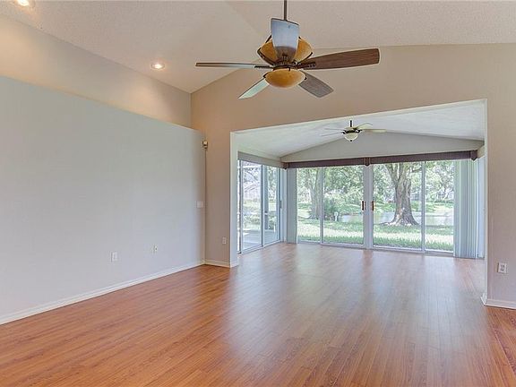 This pristine home features three spacious bedrooms, two bathrooms, attached two car garage all located in the desirable maintenance free community of Pinehurst Village. This spacious open floorplan home is great for entertaining as it features multiple large living spaces, a large kitchen with plenty of counter space & three rear patios. Upon entering the you are greeted by plenteous natural light & soaring vaulted ceilings. Just off the foyer through french doors is a spacious flex room that can be used as a den/bedroom. The formal dining room offers a chandelier lit ceiling fan, large window and wood laminate floors. Prepare a feast in the gourmet kitchen boasting recessed lighting, under-lit wood cabinets, closet pantry, breakfast bar & nook and tile flooring. The oversized living room is made complete w/ a lighted ceiling fan, vaulted ceiling plant shelving w/recessed lighting and wood laminate flooring. Relax and unwind in the cozy master suite it features a vaulted ceiling, ceiling fan, sliding glass door to private patio, newly installed wall to wall carpeting & a skylight lit private master bathroom w/ dual sinks, glass walk-in shower, walk-in closet & ceramic tile flooring. Enjoy the beautiful lake view from one of 3 rear patios. Call today to schedule your private showing.