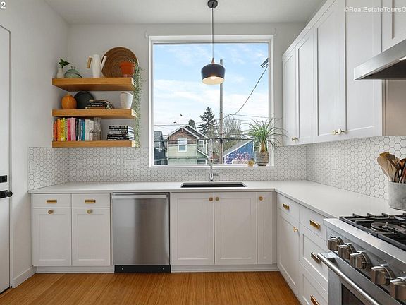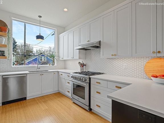 Stunning 2018 3 bedroom home in NE Portland, with 10 foot ceilings, huge windows throughout, ensuring abundant natural light year round. Bamboo floors and the modern chef's kitchen light up the space and make it feel homey. It's just 1/2 mile from the Adidas campus, walkable to the Mississippi and Alberta Arts districts, and a 5 minute drive or 15 minute bike from the pearl and downtown. There are brand new high end amenities like a washer/dryer, gas range, oversized oven, and large refrigerator. There are mini splits in every room, allowing you to maintain just the right temperature, while also ensuring the highest energy efficiency. There is a nest doorbell and camera for added security, and an outdoor wood-paneled patio attached to the kitchen that has a hookup for a BBQ. Two garden beds can be found in the front yard for those with a green thumb.