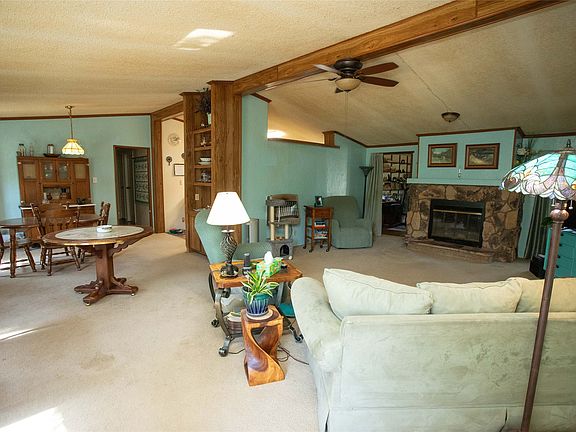 The property includes a large, connected five-bedroom residence (a manufactured and mobile home combined), providing immediate living or rental potential while you plan its future. The home features multiple living areas, a fireplace, and hardwood flooring in the older section. The land itself is heavily wooded with beautiful live oaks, features a pond, and is partially fenced.