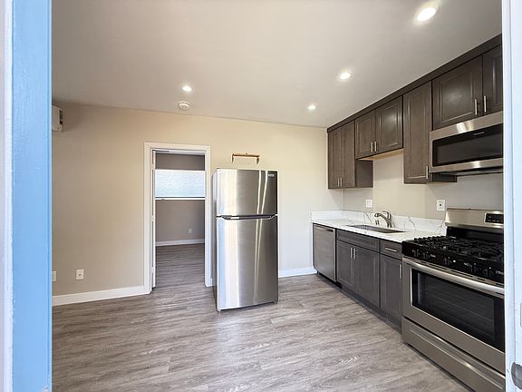 Welcome home to this newly built one-bedroom, one-bath ADU. The kitchen is a chef's delight, showcasing premium quartz countertops and a full suite of stainless steel appliances, including a microwave, refrigerator, dishwasher, and stove.