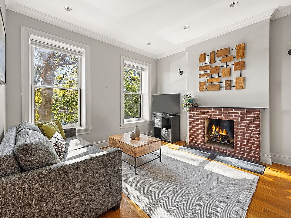 Welcome to this turnkey Park Slope condo with a huge private outdoor oasis — a beautifully designed, light-filled 2-bedroom, 2-bathroom condo nestled on a tree-lined block in South Park Slope. This thoughtfully appointed home blends modern comfort with warm character, featuring a wood-burning fireplace, open contemporary kitchen, and in-unit washer/dryer for ultimate convenience.