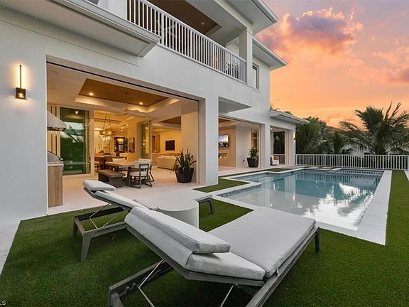 Experience the epitome of luxury living in this exceptional new construction home, perfectly situated in the heart of Olde Naples. Crafted by Refined Builders, this remarkable residence presents a rare opportunity to own a true masterpiece in one of Naples’ most coveted locations. Ideally positioned just minutes from the world-class dining and shopping of 5th Avenue South and 3rd StreetSouth, as well as Naples’ iconic beaches, this 4-bedroom + den, 5.5-bath home offers the perfect blend of luxury, comfort, and convenience—complemented by tranquil lake views from the 2nd floor and lush tropical landscaping. Wide-plank European oak floors and tongue-and-groove ceilings set a sophisticated tone, while the expansive great room flows seamlessly into a stunning gourmet kitchen featuring a quartz-clad center island, sleek two-tone cabinetry, and a full suite of premium Thermador appliances—ideal for both everyday living and elegant entertaining. Sliding glass doors lead to your private outdoor sanctuary, complete with a resort-style saltwater pool and spa, custom summer kitchen, and a spacious covered lanai—perfect for seamless indoor-outdoor living. The first-floor primary suite is a luxurious retreat with direct pool access and a spa-inspired bath featuring a soaking tub, oversized walk-in shower, and dual vanities. Upstairs, three ensuite guest bedrooms—including a VIP second master—are accessible via stairs or a private elevator. A bonus living room with wet bar, scenic balcony, and captivating lake views provides a relaxed space to unwind or entertain. Additional highlights include dual laundry rooms, a 3-car garage, tankless water heater, whole-house generator, and propane tank.