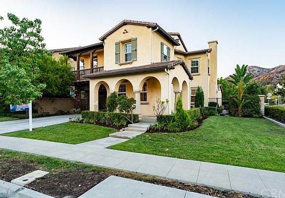 Gorgeous two-story home built in 2012 located in the desirable community of Rosedale. This charming Spanish style home offers 3,450 sqft, 5 bedrooms 4 bathrooms with an open floor plan. Gourmet kitchen with a brand new island and stainless steel appliances, opens to the dining area. The bright spacious family room, can access to the backyard through French doors. Floor plan flows very well through the whole house. There is one bedroom on the main floor. Nice spacious powder room for the guests. Brand new Laminate flooring and fresh new paint throughout the whole house. Second floor showcases a large loft, a laundry room, a master bedroom suite with a large balcony that has a beautiful mountain views, master bathroom featuring tile flooring, dual-sink, walk-in shower, huge soaking tub, and a large walk-in closet. One guest bedroom suite with its own bathroom, and two other guest bedrooms share a Jack and Jill bathroom. Elegant white wood shutter window treatments though out the whole house. Stepping out is the covered patio, functional backyard and side yard. 7,712 sqft lot surrounded by many trees. Community amenities to include numerous parks, hiking and bike trails, recreation center clubhouse, fitness center, swimming pool, SPA, outdoor BBQ's perfect for gatherings and social enjoyment. San Gabriel River Trail entrance within biking distance one of the best paths in country from Azusa to Seal Beach. Location is very accessible to the newer Azusa Gold Line station which connects to Pasadena and Downtown LA.