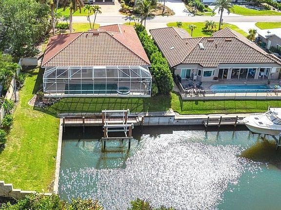 **Live on the water in Conners but NO FLOODING!! Have your boat in your backyard** This is the only home in this price point that has NEVER had water in the living space. Bright, airy 3 bedroom plus den, canal front home with soaring ceilings and an open floor plan. Best of all, this home had no water in the house from Ian, Helen, or Milton! Safe and sound. Private and peaceful setting at the end of the canal with scenic mangroves across the way. Plus, walk to the beach through the recently beautified Conners Park! The oversized lot provides ample space and added privacy. The primary bedroom suite is a standout feature, boasting his-and-hers bathrooms, one with a soaking tub, and a shared shower—plus two walk-in closets and direct access to the covered lanai and pool. New roof in 2022, new boat lift and sea wall in 2018, HVAC in 2017. Hop on your boat and head out for dolphin watching and sunsets! Or relax in the pool and hot tub. Plenty of space for everyone in a bright, private setting.