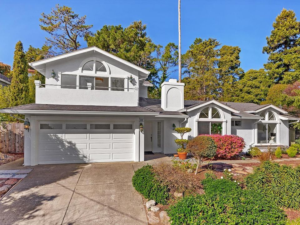 Situated on a quiet cul-de-sac in the sought-after 'Belveron West' neighborhood this light and bright two-story residence offers an inviting layout, recently updated with a new roof, new hardwood floors throughout the main level, new carpet throughout the upper level, and new quartz countertops in the kitchen. The open and airy living/dining room is designed for effortless entertaining and everyday comfort, featuring vaulted ceilings, skylights, a wood-burning fireplace, and sliding glass doors opening to the private backyard. The kitchen features new quartz countertops, a stainless steel sink, a peninsula with seating for (6), and top-of-the-line stainless steel appliances. Spacious family room with a wood-burning fireplace, built-in cabinetry, and access to the backyard. Two comfortable bedrooms and an updated full bathroom complete the main level. Expansive upper-level primary suite with vaulted ceilings, high end carpeting, a walk-in closet, great primary bathroom, and sliding glass that open to a sunny balcony with views of the bay, Sausalito, and the San Francisco skyline. Private backyard with a sunny patio, a fountain, and manicured landscaping with a beautiful rose garden. Attached two-car garage and large driveway with additional parking.