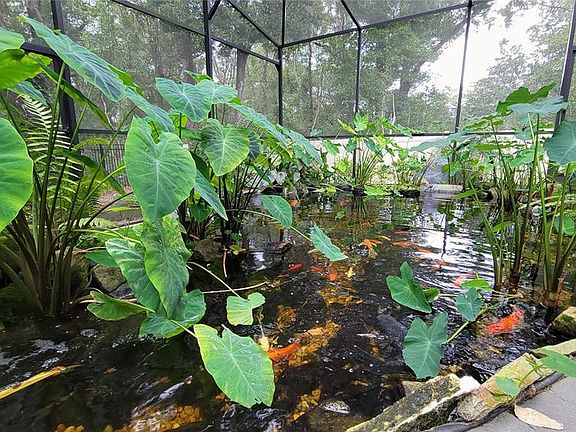 Huntington Downs Gem Welcome to a truly exceptional residence in the sought-after Emerald Line of DR HORTON the "Easton B model" in beautiful Huntington Downs. Show-Stopping Koi Pond that is supersized, A truly one of kind center piece that is something that you would see or find at a Disney theme park all under a screened lanai, that is a show stopper. This home is completely upgraded and surrounded by serene preserve land—offering unmatched privacy and natural beauty on 1/3 of an acre. Property Highlights: A Gourmet Kitchen with FARM SINK, Quartz countertops and REAL WOOD Cabinets. Spacious Layout: Featuring a junior suite with walk-in closet and private bath, plus a secondary den and office with sleek epoxy flooring. 3-Car Garage: Includes smart lighting, two smart garage door openers (ADT app compatible), attic access via stairs in garage and primary closet. Energy Efficient: Solar panels capable of powering the entire home (to be paid off with a strong offer), tankless water heater, water softener, Energy Star windows, and reclaimed water sprinkler system. Hurricane-Ready: Impact-resistant CAT 4 hurricane windows for peace of mind. Connectivity: Fiber and cable utilities already in place Unique Features Food Forest Paradise: Enjoy a bounty of edible plants including mangoes, avocados (Brogdon & Hass), papaya, lychee, fig, dragon fruit, pineapple, grapes, blackberry, strawberry tree, sweet potatoes, bananas, and more. Pollinator-Friendly Landscaping: Local flowering bushes attract butterflies and bees, enhancing the garden’s vitality Fenced Yard: Vinyl fencing on the sides and aluminum fencing at the rear for unobstructed views of the preserve. Smart Home Features: Solar Edge app for monitoring energy usage, smart garage access, and exterior lighting, Additional Amenities. Pest control service by Heron every 3 months. Gutter system installed post-construction.