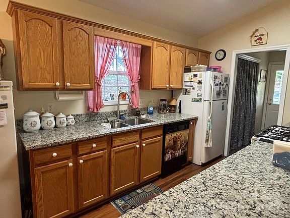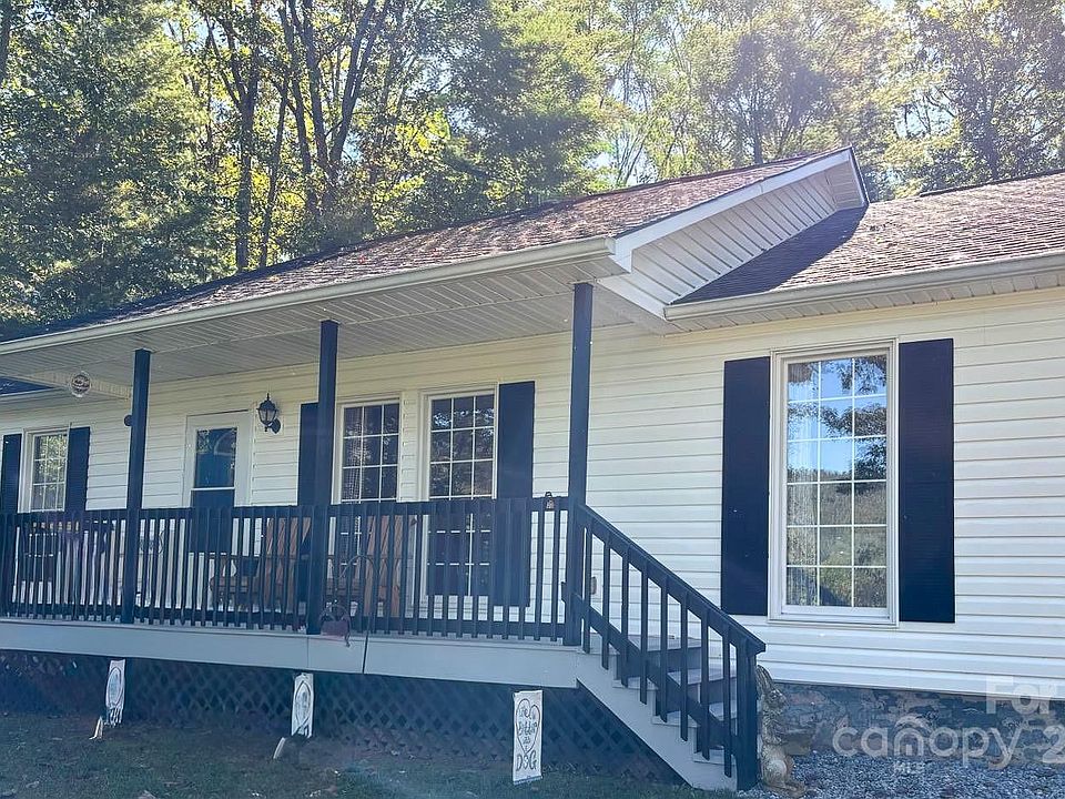 Pretty view, private setting; well-maintained home. Featuring open floor plan, vaulted ceiling, granite countertops, tile wood floors. Main bedroom offers walk-in closet, private bath with his and her sinks. Carpet in guest bedroom and den/study. Covered front porch and partially fenced in yard great for pets. New 10X24 rear deck is being installed. One shed and one outbuilding. Attached carport with two parking spaces, and above storage with pull down stairs. Only 1.4 miles from charming little town of Bakersville.