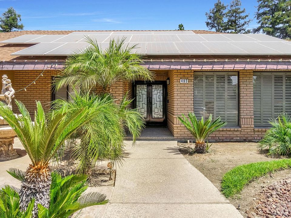 Welcome to this beautiful Wathen Castanos Mansionette home with Owned solar and Pool, ready its new owner! Step into open-concept living with a vaulted, wood plank ceilings where the traditional step-down has been removed, creating level floors and two beautiful living spaces. Do you love entertaining and hosting family holidays? Then look no further!Travertine tile throughout the living and dining area compliments the fireplace for warm gatherings for family gatherings in the living area. Enjoy cooking meals as the kitchen offers plenty of cabinetry, granite countertops, full home water purification system, breakfast bar and extra storage that seats 5. It has a new pool pump, newer HVAC, and dual pain windows provide great energy efficiency.Each bedroom is a good size with laminate flooring and a flex room that can act as an extra bedroom, work out area or office. Enjoy stunning tile work in both bathrooms and a custom storage wall for all your needs. The extra large laundry and mudroom are what dreams are made of...swoon. The cherry on top is your custom backyard to forget the day. Leave your phone in the house and dive into your heated Pebbletec pool, sunbathe on the pool steps or chill under the brand new gazebo! Conveniently located near 168, Fresno State, and Clovis Community, schedule your visit today!