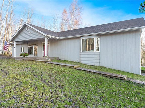 Serene Retreat for Active Empty Nesters – Spacious Home with Oversized Garage on Picturesque Lot. Discover the ideal blend of comfort, functionality, and outdoor living in this thoughtfully designed 3-bedroom, 2.5-bath home tucked away on a scenic lot off of Farmers Loop. Perfect for active empty nesters looking to downsize without sacrificing space for hobbies, guests, and adventure. The foundation is a combination: the main part of the house is concrete block, while the garage is slab on grade, so the area above the garage includes the owner’s bedroom and bathroom. This well-maintained home offers plenty of storage, so you can stay organized while enjoying a clutter-free lifestyle. The flexible layout features comfortable living spaces and multiple decks for quiet mornings with coffee or evenings spent enjoying Alaska’s natural beauty. One of the standout features is the oversized 4-car garage—a dream for those with toys, tools, or outdoor gear. There's also a greenhouse and storage shed, ideal for gardening, DIY projects, or simply keeping everything in its place. With abundant parking, there's room for RVs, trailers, or guests to visit with ease. Low-maintenance, private, and set in a peaceful location just minutes from town, this home offers a balanced lifestyle: space to host the grandkids, pursue your passions, and lock-and-leave convenience for travel.