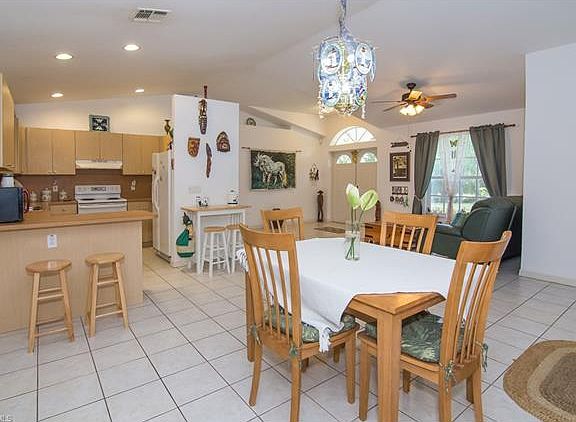 Beautiful and well maintained private 2.38 Acres which is at the very end of the street with no neighbors. The home offers vaulted ceilings throughout, split floor plan with 3 bedrooms, 2 baths, large living room, open kitchen layout, and 2 car garage. The master suit opens to the lanai area and has a walk in closet. The master bath has separate tub and shower and double vanities. The living room opens to the large lanai which is surrounded by landscaped and wooded area. Come and enjoy nature at its finest!!! Garage and lanai are level with the rest of the home which it will make it easy to convert into livable space if desired or makes home handicapped accessible.