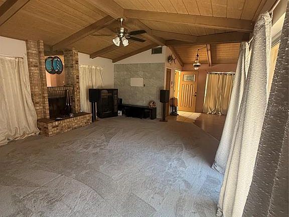 Great opportunity to own this single-story 2 bedrooms, 2 bathrooms condo featuring a private screened-in pool and attached 2-car garage. The split floor plan offers comfortable separation between bedrooms, while the living room and primary suite showcase vaulted wood plank ceilings that add warmth and character. Additional interior highlights include a wood-burning fireplace, a convenient pass-through window from the kitchen to the dining area, and sliding glass doors that lead to the screened lanai and pool area, perfect for relaxing or entertaining. Ready for its makeover, this condo provides the perfect canvas to update and create your ideal retreat. Located in the gated community of Island Club at Rosemont, residents enjoy quaint neighborhood streets, tropical landscaping, tiled roofs, a clubhouse, and a community pool. Centrally positioned near College Park, Downtown, and major highways, offering both convenience and accessibility. Welcome Home!