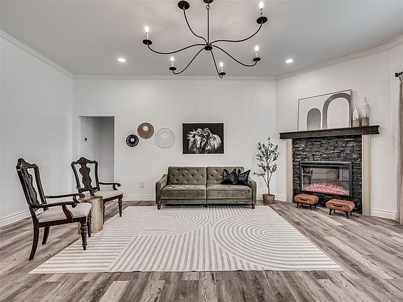 The kitchen showcases a huge farmhouse sink, granite countertops, a sealed stone backsplash, a custom built-in range hood, and all new appliances. The living room centers on a stacked-stone electric fireplace, while the master suite feels like your very own spa with a spa with a chandelier over the soaking tub, framed by beautiful jade tile, a walk-in shower, separate toilet room, and a twin sink vanity with actual marble.