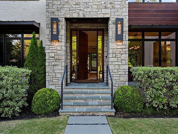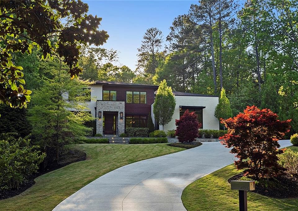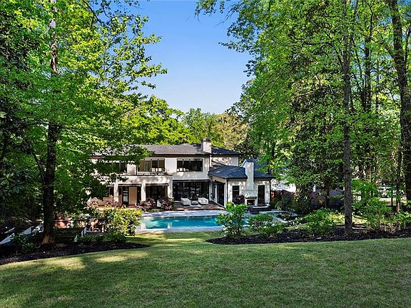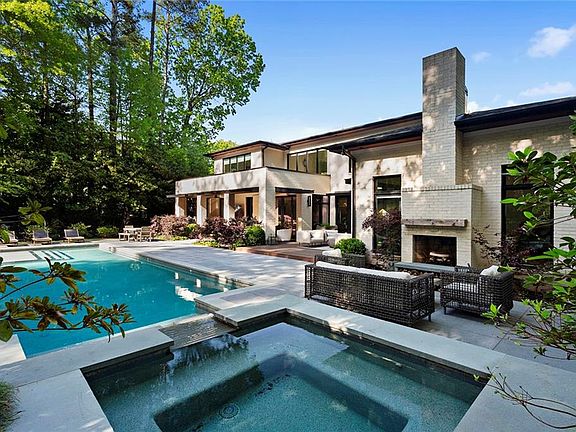 Architecturally inspired by Frank Lloyd Wright, this one-of-a-kind custom home blends modern rustic design with luxurious functionality, offering over 5,000 square feet of indoor-outdoor living on the main level alone. Perfectly situated in the heart of Sandy Springs just minutes from Buckhead, Brookhaven, and Chastain Park this thoughtfully designed residence sits on a private, beautifully landscaped almost an acre lot and is built for both entertaining and everyday living. Step through the striking mahogany pivot door into a dramatic open-concept floor plan anchored by a main-level primary suite and expansive indoor-outdoor connectivity. The gourmet kitchen is a chef's dream, featuring Sub-Zero and Wolf appliances, custom cabinetry, and views overlooking the serene saltwater pool. The main-level primary suite is a true retreat, complete with a marble-clad bath featuring heated floors, a soaking tub, oversized steam shower, sunlit walk-in closet with laundry, and a private office or sitting room that opens to the outdoors. Outside, enjoy resort-style living with a covered outdoor kitchen, fireplace, spa, and expansive patio surrounding the oversized pool all framed by mature landscaping for ultimate privacy. Upstairs, you'll find five spacious en-suite bedrooms including a secondary primary suite all with walk-in closets, plus a second full laundry room for added convenience. The terrace level mirrors the home's full footprint and includes a dedicated media area, gym, game room, and an additional en-suite bedroom offering ample space for recreation and guests. Car enthusiasts will love the oversized garage with room for storage and the ability to accommodate a lift. This exceptional property offers timeless design, privacy, and location tucked away in one of Sandy Springs' most coveted neighborhoods with effortless access to I-285, GA-400, top schools, and premier dining and shopping.
