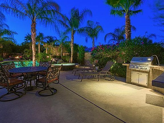 Wow! Imagine coming home to this tropical resort paradise (named Twenty-Eight Palms by the Seller). Entertain dozens of guests without any sense of crowding. Savor the serenity of this 1/2 acre oasis while watching the evening sky turn purple. Enjoy conversation around the glass crystal firepit. Refresh with a swim in the exotic pebble-tec salt-water pool or relax in the spa with 11 powerful jets! Grill on the new, built-in Jenn-Aire BBQ at the outdoor kitchen. Stay cool with the pro 1,000 PSI Misting System. Even grow vegetables & herbs in an organic garden plot. Lush desert landscaping w/6 citrus trees. Home is offered exquisitely-furnished (per inventory). This is a must-see for colorways, floor coverings, decor, and furnishings (including the ebony grand piano). Currently configured with 3 bedrooms and 2 offices. 1 office can easily be reverted to a bedroom if needed. Isn't it your time to enjoy all the best in desert living? It is all here at Twenty-Eight Palms.