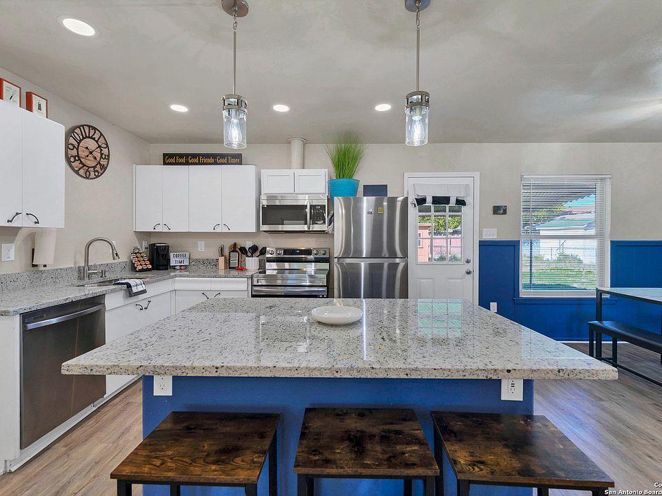Large oversized backyardGranite countertopsNewly upgraded modern kitchenSleek stainless-steel appliancesCozy and inviting interior