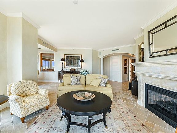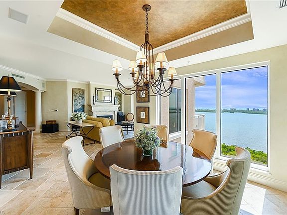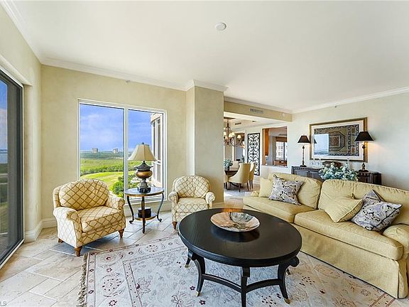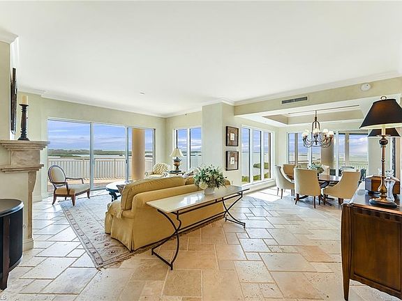Imagine seeing the Gulf, bay, golf course and twinkling city lights all in one view! Three terraces and large sliding glass doors frame breathtaking views in all directions. This elegant yet comfortable 3,566 square foot condominium has travertine floors throughout the formal living area and dining room. The two carpeted primary Suites are both fitted with King size beds (one can be converted to two twin beds.) One primary bathroom has a water closet with a bidet, dual vanities and a soaking tub with a separate shower while the other ensuite bath offers a walk-in shower. A third guest room offers a queen bed and an adjoining bath, and there is also a sofa bed in the family room. Enjoy cooking in the gourmet kitchen offering plenty of cabinet and countertop space, a gas cooktop and a counter bar that opens to the eat-in area and family room OR cook on your own built in gas grill located on your screened lanai. Azure amenities include a resort style heated pool and spa, a screened Cabana Bar with a fireplace and TV, Theater Room, Fitness Center, Guest Suites, an On-Site Manager and more. Bonita Bay is an award-winning guard-gated golf course community with parks, preserves, and beautiful natural landscaping surrounding the 12 miles of walking/biking paths. There is also a marina with boat docks available to rent, waterfront dining, and three waterfront parks that feature canoe & kayak launches, picnic areas, fishing piers, boardwalks and playgrounds.