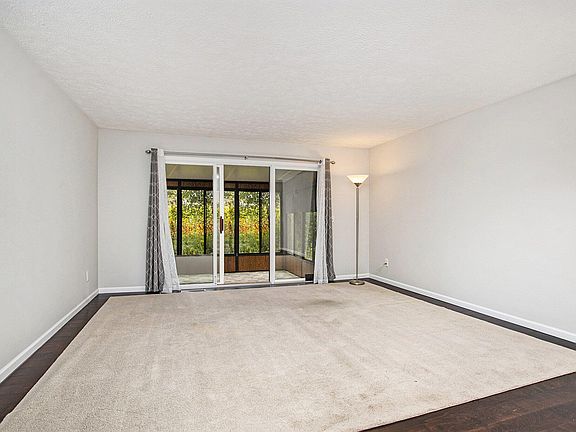 Center islandWood floorsViews of treesWasher and dryerGarbage disposalThree season roomUpdated kitchen