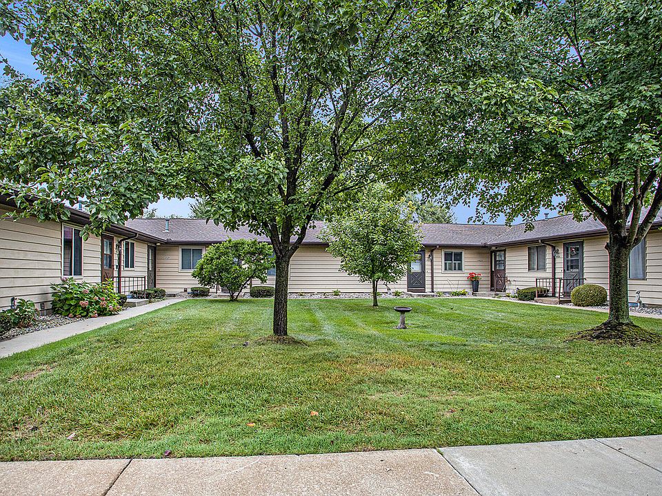 Wonderful condominium in Leisure Pointe, a 55+ community. This condo offers an updated kitchen with white cabinets, stainless stove, refrigerator, dishwasher, garbage disposal & microwave, center island. Beautiful wood floors in the kitchen and living room. Three season room with views of trees. The basement offers plenty of room to finish if you would like (ceiling already completed) with a half bath and laundry room including washer & dryer. Great location out in the country but close to walking trails and stores. Roof on building was replaced in 2024.