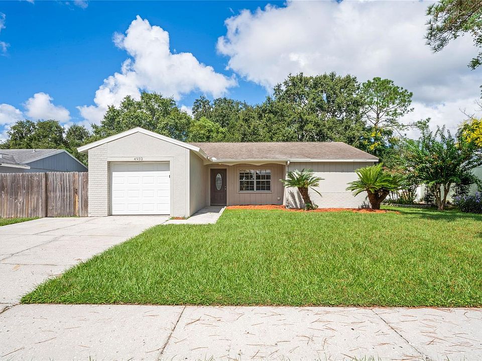Welcome to 4932 Hi Vista Cir! This 3-bedroom, 2-bathroom home offers nearly 1,200 sq ft of living space. Step inside the foyer to find modern paint and tile throughout the home, for ease of maintenance. The layout features a spacious living room that connects seamlessly to the kitchen complete with stainless steel appliances. The primary suite boasts a private en-suite bathroom, a walk-in closet, and a walk-in shower, while two additional bedrooms share a full bath. The rear sliding glass door provides easy access to the fenced-in backyard featuring beautiful mature trees. Conveniently located near schools, shopping, and major roadways. Call to schedule a showing today!
