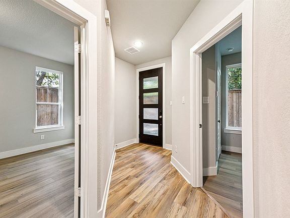 This pristine 3-bedroom corner unit townhome, built in 2020 by David Weekly, is located in the highly desirable Edgewater community in the River District. With its premium corner position, huge windows on the second and third floors overlook mature trees, giving the home a true “modern treehouse” feel. Enjoy your morning coffee from private balconies and patios with peaceful treetop views on both the second and third floors. The stunning kitchen is anchored by a large center island with quartz countertops, double-stacked cabinetry, captivating lighting, a gas cooktop, and a top-of-the-line GE Profile appliance package that includes the refrigerator. It flows seamlessly into the dining and living areas, all enhanced by luxury vinyl plank flooring throughout the main level. A designated laundry room is also part of this magnificent second floor and Electrolux ® Washer and Dryer are also included. The second-floor primary suite offers a sleek ensuite with a walk-in closet, walk-in shower, and large soaking tub. A spacious game room on the third floor provides the perfect retreat or entertainment space. Additional highlights include a 2-car garage, an open and airy layout filled with natural light, and access to over 40 miles of Trinity Trails, TCU, hike or bike to Downtown, The Stockyards and more.