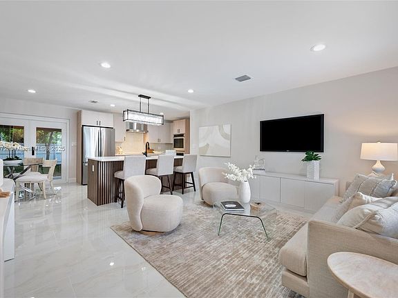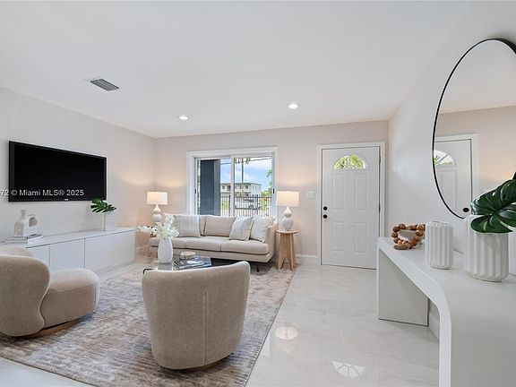 Exquisite 3BR/3BA (extra room that can be used as a bedroom) Miami Gardens home with multi-million dollar finishes! Chef’s kitchen w/ stainless steel appliances, double oven, two-tone cabinets & quartz counters. Primary suite boasts soaking tub, custom tiled shower & dual vanity. Upgrades include HVAC, roof, new floors, doors, recessed & exterior lighting, plus landscaping. Two porches, massive driveway, fenced private backyard, no HOA. Feels like brand new construction—unmatched quality & style. A true one-of-a-kind gem!