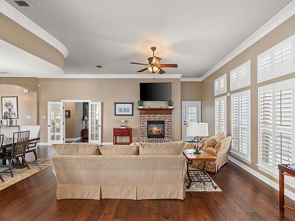 Cozy gas fireplaceCharming courtyard entryBuilt-in outdoor kitchenTimeless plantation shuttersLarge granite islandCovered patioGourmet eat-in kitchen