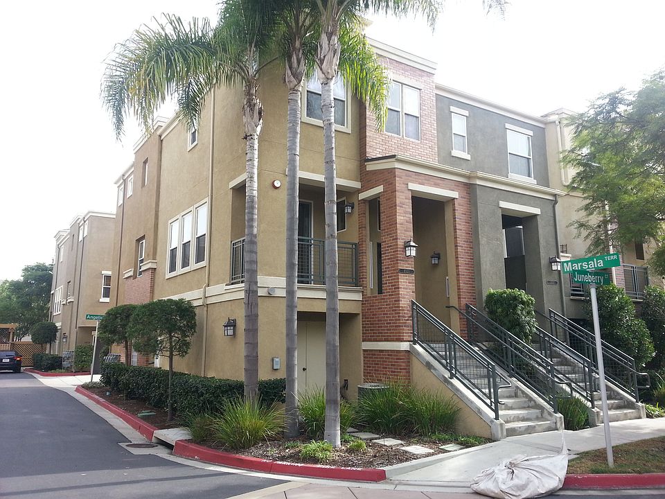 Designer decorations in this tri-level 1870Sf. 2br/2.5 ba newer townhome in the Spectrum. Large master bedrooms plus den/office, granite counters, stainless appliances, central A/C, washer dryer, 3 car attached garage & so much more . Complex has gym and outdoor bbq area. No pets, no smoking. Available now for one year lease. Agent 619 630 7053. Must have good credit. Minimum verified gross income of 3 times rent.