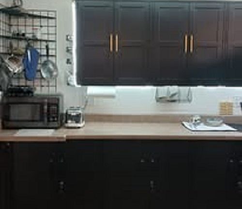 This has a newly remodeled kitchen and bathroom with added washer and dryer. This studio is fully furnished with toaster oven, crockpot, toaster, waffle maker, hot plate, microwave, small frig, shelves, dresser, desk, tables, chairs, dishes, bed and linens. The electric, water and trash are included in the price. Tenant will need to fill the propane tank come colder weather. Room is 16x24 feet