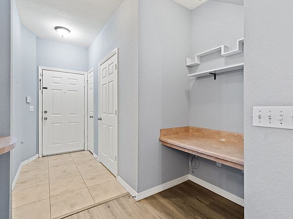 This picturesque two-bedroom, two-and-a-half-bath townhome in Magnolia Place is ready for you to call it home. Upon entering, you are greeted by ceramic tile and stylish vinyl plank flooring. The downstairs living area features a bright kitchen equipped with white appliances and cabinetry, complemented by a convenient breakfast bar. Additionally, there is a built-in computer desk, a guest bathroom, and the living area opens to a private porch, ideal for sipping coffee and enjoying the local wildlife.