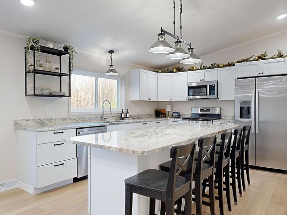 Beautifully renovated 4 bedroom, 2 1/2 bath home on 6 wooded acres. Conveniently located between Shepherd, Mt Pleasant, and Midland. New metal roof, all new electric, all new plumbing, front and rear decks, all new luxury vinyl plank flooring and carpet, all new window treatments, new large picture windows in kitchen and living room to take in views of the woods, all new kitchen cabinets and granite countertops, plus more! Primary bedroom suite includes deluxe full bath with new double sink vanity and shower with glass enclosure, plus walk-in closet with his & her open wardrobes and new window to add natural light. Three additional bedrooms. Plus, a second full bath and 1/2 bath. Full basement with new windows including 2 new egress windows. Attached 2 car garage. Wooded acreage with beautiful views of the trees and wildlife, groomed walking trails, 1/2 acre fenced in chicken coop, 2 large fenced garden areas, 1 fenced area for small livestock, smoke house with new matching metal roof, long entrance driveway, and quiet neighborhood.