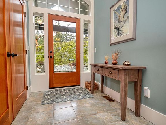 This first time on the market, 4 bedroom, 4 bath, custom residence by KB Design, provides stunning views of Juan de Fuca Strait and the Olympic Mountains. Enjoy morning coffee while taking in the ocean views and the beautiful majestic Olympic range from the spacious deck. Placed on a 4 acre parcel with park at its edge, this one of a kind home is nestled on a quiet no-thru street. Oodles of heated storage, a double garage, heat pump for chilly winter nights and air conditioning for the summer. Enjoy the beautiful hardwood floors, easy care Hardi-plank siding, long lasting composite decking and great maintenance . Aluminum and glass railings complement the outdoor living space. Relax in the jetted soaker tub, luxuriate in the master ensuite with heated floor. Live in luxury in this serene, peaceful and natural setting. Fifteen minutes to the shopping and medical/dental services in Royal Bay. Overnight notice appreciated. Home is alarmed. Call to confirm your visit.