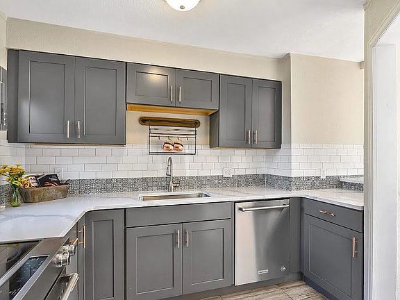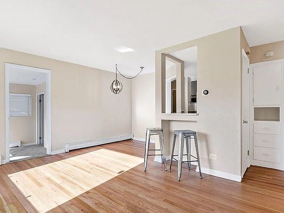 Welcome to this charming 3-bedroom, 2-bathroom home in the East Berkeley neighborhood of Denver. Step inside and be greeted by a well-designed and fully updated interior! The remodeled kitchen in 2019 features new cabinets, quartz countertops, tile flooring, copper hardware, and a decorative backsplash. The right wing offers two guest bedrooms or an office, along with a guest bathroom. The family room is cooled with an evaporative cooler, while the primary bedroom, located off the family room, has a room A/C unit. The remodeled primary bathroom includes a walk-in shower. The door from the kitchen to the backyard, as well as the laundry room door, leads to the exterior and is fitted with a pet door. Washer and dryer are included. Enjoy the private backyard oasis with a concrete patio, fenced yard, and a dog run. Don't miss the oversized, deep detached garage at the back of the home! Conveniently located near Regis University, downtown Denver, and light rail. A well-behaved pet may be considered with an additional deposit.