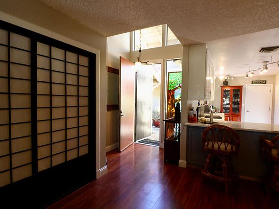 Experience this serene and cozy 2BR/1BA home featuring a gated entry for added privacy. Well-loved and meticulously maintained, it boasts beautiful wood floors throughout, upgraded countertops in the kitchen and bathroom, vaulted ceilings, and skylights that create a spacious feel with great views of open spaces and a walking path. Enjoy the large patio perfect for entertaining, a convenient 2-car garage, community pool for relaxation, and extra parking for guests.