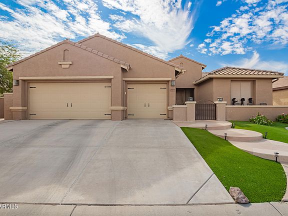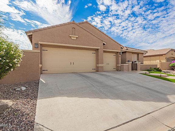 Location + Curb Appeal can't be beat! Lovely Talavera with Inviting Front Patio to watch the Golf Cart Parades and gorgeous Arizona Sunsets! Grand Courtyard with Green Turf entering the Stunning Foyer. Beautiful large Great Room with entertainment alcove. Gourmet Kitchen recently remodeled with natural gas new Stove & Oven. All newer White Tile floors and Carpeting in Bedrooms. Recently replaced Gas Water Heater, Recirculating System and Water Softener. In 2022 added 28 Solar Panels with battery backup for efficient living along with Integra Block construction. A big plus is also Solar Screens. HVAC system was replaced in 2022 by RUSH A/C. Dining room has Bump-out Bay Windows. The large Laundry Room with extra upper & lower Cabinets plus sink. Oversized 3 Car Garages & Storage! Grand Primary Bedroom has Bump-out Bay Windows for lounging area. Primary Bathroom with Dual Vanity Sinks, Soaking Bathtub, Double-sized Shower & Walk-in Closet! Backs to Trail System Open Area VIEWS.