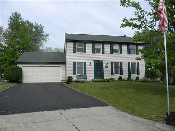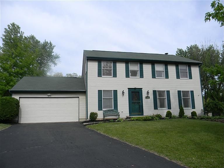 Looking for a spacious two story with semi-finished basement,4 bedrooms,2 full baths,2 half baths and a nice size yard to play in?Look no more,here it is.Home has many things to boast about.To start off,home being located on a court,pull into the two car driveway with two car attached garage and your journey begins. Main level and upstairs carpeting new,kitchen has porcelain tile floor,recessed lighting above as well as under cabinet lighting and to top it off,granite counter tops.Kitchen appliances stay.Familyroom has woodburing fireplace and off of familyroom are sliding doors that lead to two tiered deck and 24 foot above ground pool to cool off in and theres still plenty of room to play in the yard.Property also backs up to green space.Back inside and down to the basement enjoy the 12 foot bar,brass sink and refrigerator for an entertaining combination.Also has half bath and workshop area.New 200 amp electric service panel,heat pump and inside unit new 2004.Home warranty offere