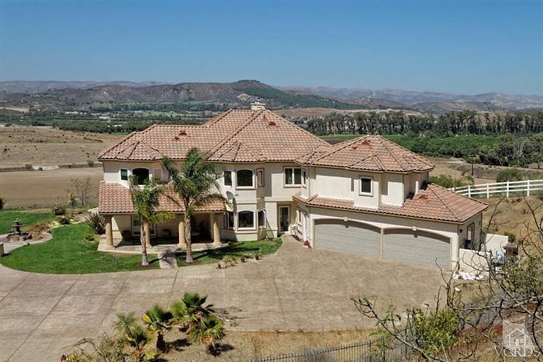 Private,custom Thousand Oaks/Moorpark home on 4+acres!This estate features formal living room w/views,theater room,wine cellar,formal dining,kitchen,&family room,1 bedroom w/bath downstairs,indoor laundry,4 car garage,4 huge bedrooms upstairs,w/private bath,including a master suite w/private balcony and bathroom suite.The rear yard features a salt water infinity pool & spa,backs up to dedicated open space, area w/paddocks below.& room to expand.Nice travertine/marble,hallways w/custom medallions,whole house sound system,vacuum system,alarm system, etc.The views are sensational,home has privacy, and the location is close to everything Thousand Oaks has to offer,yet offers a peaceful getaway in your own home. This home has a lot of potential.