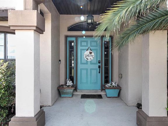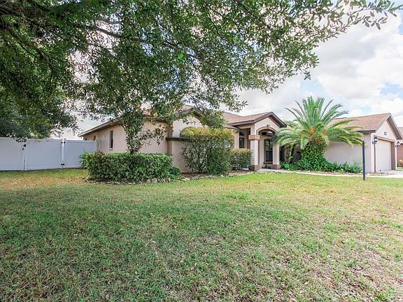 Welcome to Meadow Glenn, a gated community in southwest Ocala! This 2008-built concrete block/stucco home offers 3 bedrooms, 2 baths, a separate den/office, and a 2-car garage with 2,149 sq. ft. of living space (2,887 under roof) on a cul-de-sac lot with 0.24 acres. The backyard is fully fenced with while vinyl fencing for privacy and outdoor enjoyment. Inside, the home features a split floor plan, spacious living room with sliding glass doors to the backyard, and a large foyer entry with an upgraded front door and sunburst detail. The kitchen includes upgraded solid wood cabinets with crown molding, ample counter space, and appliances (side-by-side refrigerator, microwave, range, and dishwasher). Tile and carpet flow throughout the home. Enjoy multiple dining options with an eat-in kitchen and a formal dining area. The master suite features a walk-in closet, garden tub, separate shower, and dual vanity. Additional highlights include ceiling fans throughout, a bright versatile den/office-perfect for working from home, and all concrete areas freshly pressure-washed including the sidewalks, driveway, back porch, and sections of fencing. Located close to shopping, restaurants, and all that Ocala has to offer, this home combines space, comfort, and convenience in a desirable gated community. Don't miss this opportunity-schedule your showing today!