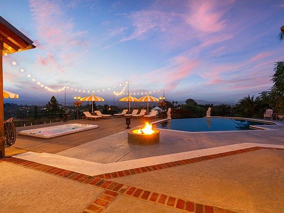 Welcome to 4938 San Jacinto Circle East, a serene retreat in the prestigious Morro Hills region of Fallbrook. Known for its expansive landscapes, estate-style properties, and unmatched tranquility, Morro Hills offers a rare blend of country elegance and accessibility—just minutes from town and major freeways. Experience resort-style living with panoramic mountain and sunset views on this fully fenced 2.78-acre estate. Beautifully refreshed and move-in ready, the home features 5,100+ sq ft of light-filled living space with European French oak floors, vaulted ceilings, and seamless indoor-outdoor flow. The chef’s kitchen includes a massive island, dual Dacor ovens, walk-in pantry, and views of the infinity-edge pool, spa, and multiple seating areas perfectly placed for sunrise, sunset, and stargazing. The primary suite offers a private terrace, fireplace library, walk-in and shoe closets, and a spa-inspired bath. Two dedicated offices support work-from-home needs. Outdoor amenities include a full kitchen with soapstone counters, teppanyaki grill, refrigerators, commercial ice maker, and kegerator, plus a putting green and lighted tennis court. A standout feature is the 1,800 sq ft detached ADU-ready building with its own bath and septic—ideal for guests, a studio, or workshop. Additional features include a dog run, 3-car garage, owned solar, private well, avocado & fruit trees, resurfaced decks, and upgraded mechanicals. A rare turnkey estate with endless possibilities.