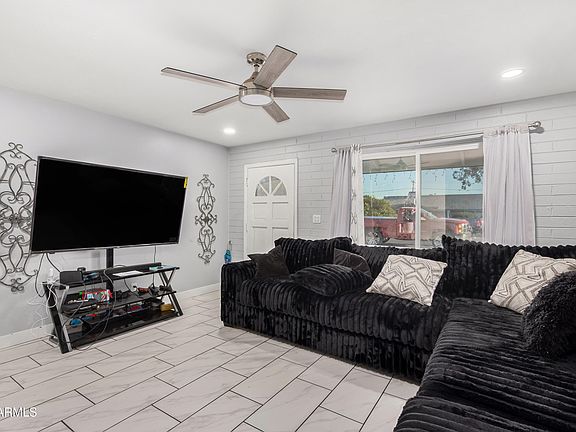 Charming and fully remodeled, with no HOA this single-story home offers comfort inside and out! A fenced front yard welcomes you with an extended driveway and carport parking for added convenience. Inside, discover an inviting living room, tile flooring throughout, thick baseboards, and recessed lighting for a bright, modern feel. The eat-in kitchen boasts white cabinetry, stainless steel appliances, quartz counters, and a matching backsplash, flowing seamlessly into a spacious family room perfect for intimate gatherings. Lovely main bedroom includes a private bathroom, providing a comfortable retreat. Outside, the large backyard features a covered patio and plenty of play space, making it ideal for entertaining, gardening, or simply enjoying the outdoors. Don't wait any longer!