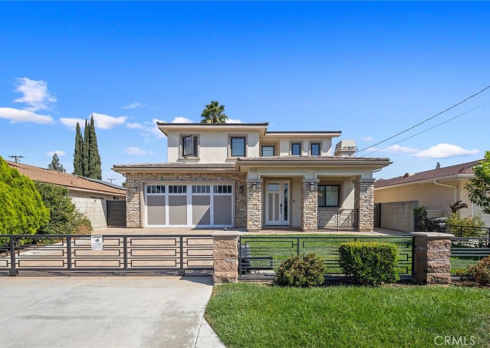 Welcome to this stunning custom-built home, located in the highly acclaimed Temple City Unified School District. Built in 2019, this beautiful two-story residence sits on a quiet cul-de-sac and offers 2,933 square feet of living space on a 6,936 square foot lot. The home boasts 4 bedroom suites and a half bathroom, with a spacious open-floor plan featuring custom ceiling lights, engineered hardwood floors, a cozy living room fireplace, and a dry bar near the dining area. The kitchen includes a large island, custom-built cabinets, and a breakfast nook that connects to the family room and patio, offering lovely views of the backyard. The layout features one bedroom suite on the first floor, and upstairs, you’ll find two additional bedroom suites and the master suite. The master suite includes a spacious walk-in closet, a vanity with a makeup station, a luxurious soaking tub, and a separate shower. Additional highlights include a pre-wired security camera system, Anderson dual-pane windows, and an automatic gate for added privacy.