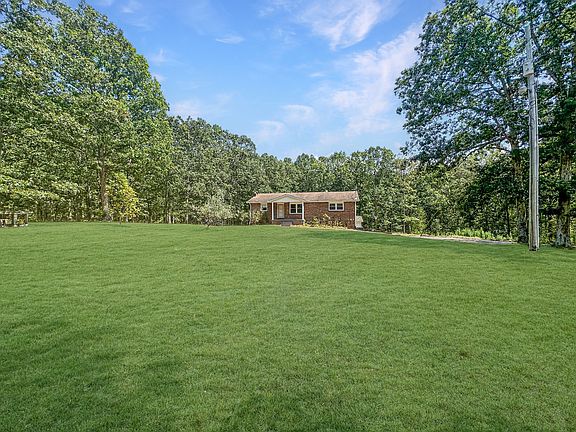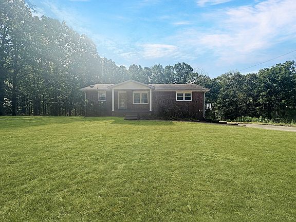 Full brick home on 10 acres with FIVE bedrooms and three full baths! The concrete driveway is lined with oak trees and takes you back to the home and detached garage. This home has lots of original features that have stood the test of time and proven to be durable. Main floor has living room, formal dining room, large country kitchen, master suite, and an additional bedroom and full bath.  The basement has 3 additional bedrooms with good natural light, full bath, large den with brick hearth/flue for wood stove, and brand new flooring throughout.  Over 2600 square feet total in the home. The detached garage has an attached covered space already set up for chickens and rabbit hutches.   Most of the land is level with a gorgeous stand of mature oaks. It's been maintained like a park. The rest of the land is wooded and great for hunting, exploring, and enjoying! The land is unrestricted. High speed internet is available here.  All appliances will remain with the home.