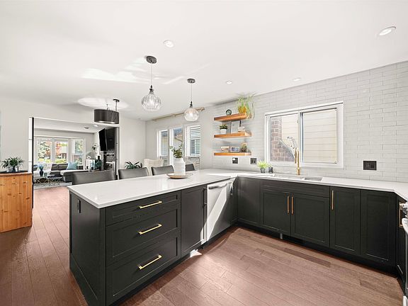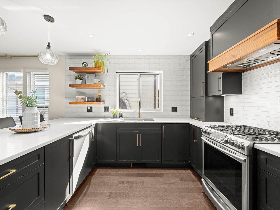 Bright open livingFull-height shaker cabinetryQuartz countersPull-out pantryDesigner tile backsplashBackyard deckWalk-in shower