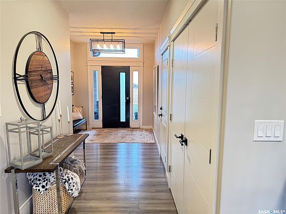 Welcome to this stunning modern-style 2 + 2 bedroom raised bungalow, ideally situated in Humboldt’s sought-after North Division—just a short walk from the hospital and Humboldt’s beautiful 18-hole golf course. Step inside to a bright, open-concept main floor featuring 9-ft ceilings and stylish laminate flooring throughout. The front bedroom offers flexible space—perfect as a home office or guest room. The spacious entertaining area includes a beautifully designed kitchen with a large island, wall pantry, and dining space that overlooks the backyard with access to a covered deck—ideal for relaxing or entertaining. The main floor also features convenient laundry and a welcoming layout designed for comfort and functionality. The primary bedroom is a true retreat, complete with a beautiful 4-piece ensuite and direct access to a walk-in closet. The fully finished basement mirrors the home’s modern appeal with 9-ft ceilings, a cozy and spacious family room, and a well-equipped wet bar (or optional second kitchen for revenue potential). Two additional bedrooms, a 4-piece bath, utility room, and storage area complete the lower level, with direct access to the heated garage. Curb appeal shines with an oversized heated garage (30’ x 24’) featuring two 8’ x 10’ overhead doors, plus an additional 12’ x 10’ section with an 8’ x 6’ rear door opening to the backyard and a direct pathway to RV parking. The fully fenced yard is beautifully manicured with lush greenspace, flower gardens, and garden boxes. Additional features include central air, central vac, and garburator.?Buyer to verify all measurements.
