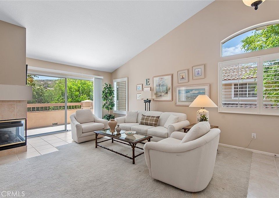 This rare single-level unit backs to open space and offers breathtaking 180-degree views of the hills. The inviting living room features a cozy fireplace and a sliding door that opens to an expansive balcony, which seamlessly connects to a versatile office or sitting area—also with direct balcony access.