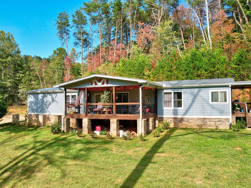 This freshly remodeled, 4 bedroom 3 1/2 bath, home has plenty of room to grow. Living room and den both have rocked gas log fireplaces, wood beams and vaulted ceilings. Seller has added wood wainscoting and textured sheetrock through out the entire home. Interior doors are solid wood, not the typical hollow core doors. There's more than enough space for parking and there are 2 septic systems on the property. The lower portion has a park like feel and lots of creek and a place for a camper to be parked already set up. Newer HVAC and metal roof already in place. Sold furnished except for a few personal items.