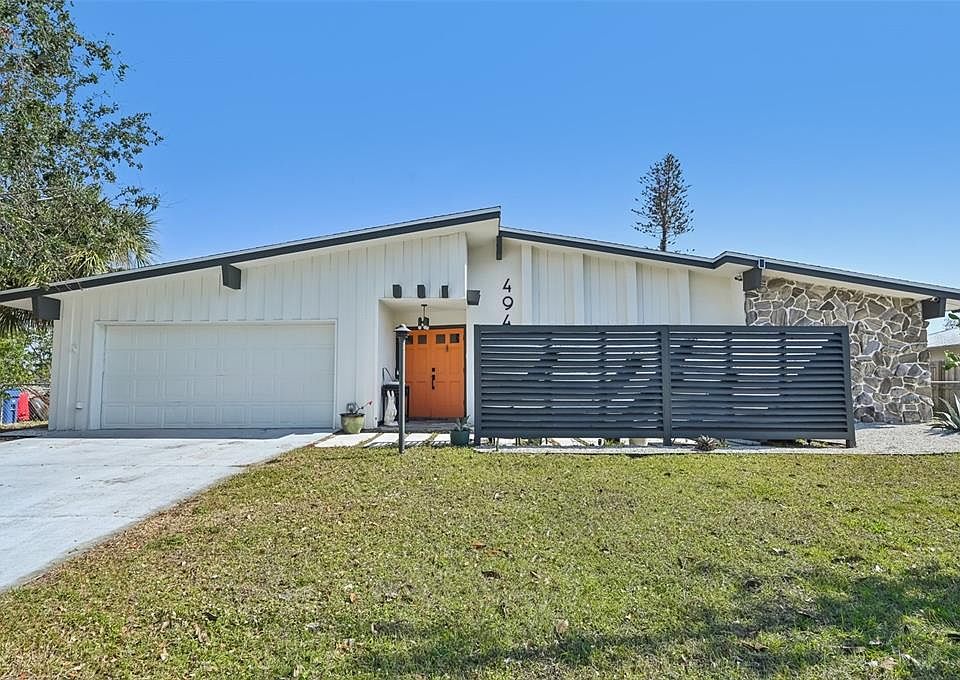 Stunning Lakefront Home with Pool & Countless Upgrades. This four-bedroom two-bath home is situated on an oversized corner lot in the heart of Venice. This spacious and meticulously maintained residence features a private front patio with pavers and a bright, inviting living room with newer floor-to-ceiling windows. The desirable split floor plan offers privacy, with the primary suite positioned to the right of the kitchen, featuring his-and-her walk-in closets and an en-suite bath. On the left side of the home, a cozy eat-in area with additional sliders to the lanai and a built-in desk/bar leads to a versatile bonus room, ideal for a home office. Down the hall, three spacious guest bedrooms offer ample closet space, including one with direct pool access, while the second bathroom conveniently features an exterior door to the pool area. At the center of the home, the beautifully updated kitchen boasts cherry cabinets, stainless steel appliances, a breakfast bar, and a passthrough window to the lanai, making it perfect for entertaining. Adjacent to the kitchen, the dining area opens to the lanai through sliding glass doors, seamlessly blending indoor and outdoor living. The outdoor space is a true retreat, designed for relaxation and entertaining. A large screened lanai with updated pavers (2022) overlooks the heated pool and fully fenced backyard, which leads to a private deck with lake access. Lush custom desert landscaping enhances the tranquil setting. This home has been thoughtfully updated with a new roof (2020), hurricane-impact sliders and pool lanai door (2024), new windows (2021) with N60 heat-control film, a 200-amp electrical service and panel (2021), a whole-home surge protector, and a complete SimpliSafe security system ($4,000). Additional updates include a refrigerator and dishwasher (2022), a Wi-Fi-enabled hot water heater (2022), a generator/RV hookup, and an updated A/C system (2017). With no HOA restrictions, this property provides exceptional flexibility for boat or RV owners. Ideally located in central Venice, residents enjoy easy access to top-rated restaurants, shopping, recreation, and Venice Island’s beautiful beaches. Optional membership in the Venice Gardens Civic Association offers access to a community pool, park, playground, and events for just $165 annually. Best of all, this home is NOT in a flood zone. Don’t miss this rare gem—schedule your showing today!