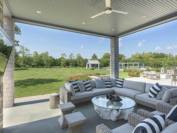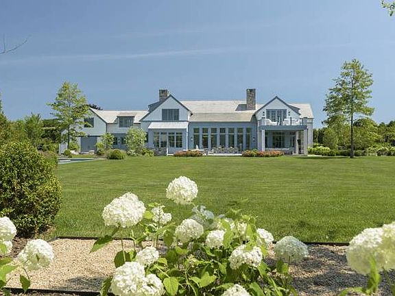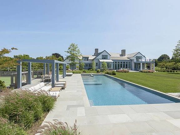 Set back from Sagaponack Village's most prestigious lane on 2.3+/- private and tranquil acres, this classic Hamptons estate designed and custom built by Michael Davis features over 7,600+/- sq. ft. of living space above ground and over 4,400+/- sq. ft. in the finished lower level. The house has eight en-suite bedrooms, a 60' heated gunite pool and spa, pergola, pool house, outdoor kitchen and a sunken tennis court. Lush landscaping, an entry court, service entrance, and a large rear lawn make for an ideal escape from the city. The transitional design of the main house was inspired by classic colonial and shingle styles. At the rear of the house, walls of glass link indoor and outdoor living spaces. A covered porch provides an outside living room with TV and fireplace. On the main level, the entry foyer features an elegant, curving stair. The 14' high great room is detailed with paneled walls and ceiling beams. In addition, a junior master bedroom is also located on the main level and a three-car garage is connected to the house through a generous mudroom. Barn doors on the north end of the garage convert the space into a grand indoor/outdoor party area. Upstairs, the master suite is accessed from a private hall and has an outdoor terrace, and luxurious his and hers baths and walk-in closets. Elsewhere the home can accommodate up to a dozen visitors with three guest bedrooms and a flex room. The lower level provides ample opportunities for entertainment, with a media room, recreation room, wine room, golf room and gym. Plus there are an additional three en-suite bedrooms for guests or staff. An elevator connects all three levels. Access to a laundry chute is provided on both the upper level and in the kitchen. The pool house is an open-air structure outfitted with a wet bar and storage, and sited to be the perfect hub for outdoor summer gatherings. The unique details compliment those at the main house, tying all the elements of the property into one balanced design.